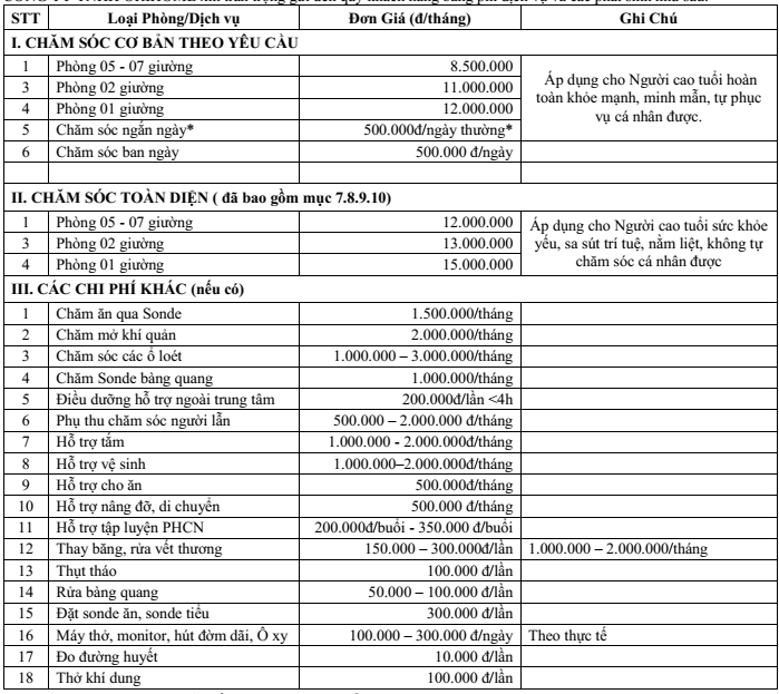 Chi phí hợp lý với các gói chăm sóc phù hợp với từng nhu cầu. Dưỡng lão OriHome xin gửi tới quý khách hàng bảng giá vào nhà dưỡng lão.